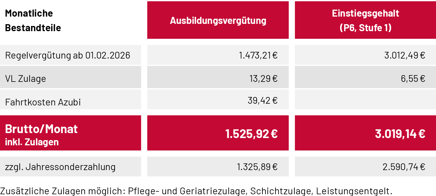 Wir bezahlen bereits in der Ausbildung MEHR: bester Tarif in der Pflegebranche mit Sonderzahlungen und Zulagen.